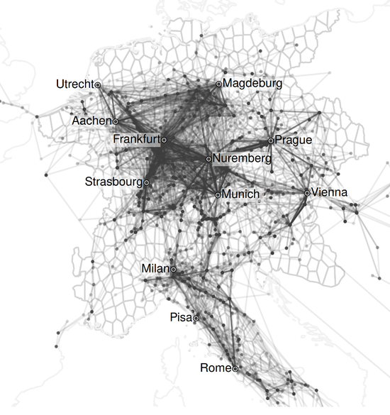 Itinerant rule, rule exercised through traveling, was a common, yet barely studied pre-modern form of governance. Studying the determinants of ruler itineraries in the Holy Roman Empire AD 919-1519, we argue that rulers focused on monitoring 'marginal' elites. Powerful rulers could count on family members and thus targeted unrelated local elites. Weak emperors had to monitor their less loyal relatives and left unrelated nobles unvisited. We reconstruct emperors' itineraries from 72'665 dated and geolocated documents and measure territorial control by their relatives. Exploiting the weakening of imperial power through the Great Interregnum (1250-1273), we find that strong, pre-1250 emperors frequented areas controlled by their relatives relatively less. In contrast, family control increased visits post-1273. Causal identification rests on the discontinuous reduction of emperors' power through the Great Interregnum and differences in family relations between subsequent emperors. The results show strategic itinerant rule as an important yet understudied form of governance. See the dedicated data page [here](../../project/hre_itineraries) and and interactive [data platform here](https://carlmc.shinyapps.io/hre-itineraries/).